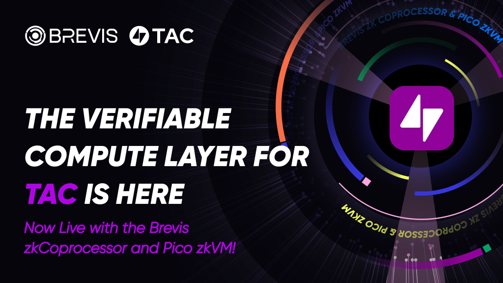 We’re excited to share that Brevis is now live on TAC, bringing the power of off-chain verifiable computation to one of Web3’s most exciting recent ecosystems. With this integration, TAC developers and DeFi builders can leverage Brevis’s ZK Data Coprocessor and Pico zkVM to create smarter, faster, and more seamless dApp experiences—at just a fraction of the cost.